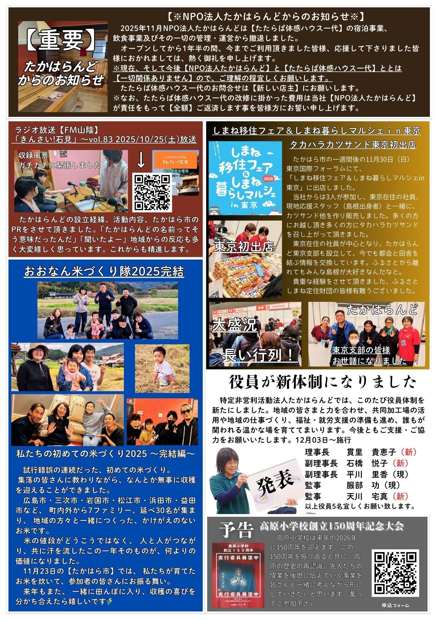 この購読権と協賛金は、私たちにとって非常に大切なものです。皆さまの参加が、たかはらんどの未来を明るく照らします。この素晴らしい機会に、ぜひとも私たちと一緒に歩んでいきましょう。